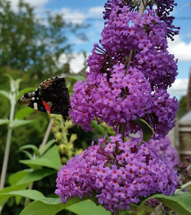 As I worked, I marvelled at the amount of butterflies feeding on one of our buddleias which really was living up to its title of "butterfly bush". When they are not in flower, buddleias are not the most attractive of shrubs (they tend to look untidy as they strive to reach their full growth potential and need to be heavily pruned each year) and we had considered removing a relatively large one that sits by the side of the river. I am so glad that we decided not to as it has been covered in butterflies, moths and bees this year. These have predominantly been Red Admirals, though there have also been a good quantity of my favourite Peacocks as well as Commas and Cabbage Whites. I have not seen such good numbers for several years and assume the warm spring gave them a head start this year. Whatever the reason, they are a joy to see and I hope they will find somewhere to lay their eggs in the garden and/or come back next year.