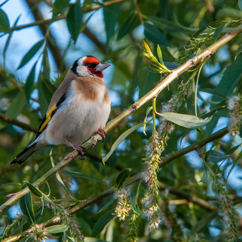 We have also seen three goldfinches (does that constitute "a charm"?) regularly in our garden. They appear to be particularly interested in our willow trees from which they have been collecting beakfuls of fluffy white seed heads, though I am unsure whether this is for food or nesting material. Happily, Goldfinch numbers in U.K. gardens seem to be on the increase, possibly as more suitable commercial bird foods become available. They often live in large flocks and have an interesting history. In the Christian religion, for example, there is a belief that the red markings on the bird's head were formed when it attempted to remove a thorn from Christ's head during the crucifixion. Goldfinches were also believed to offer protection against the plague and were kept as pets for many years throughout history, often being encouraged to perform simple tricks.